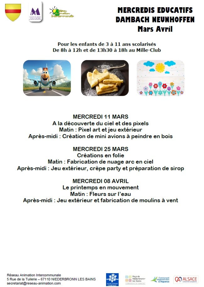 Retrouvez ci-dessous le programme et le bulletin d’inscription pour les prochains mercredis :